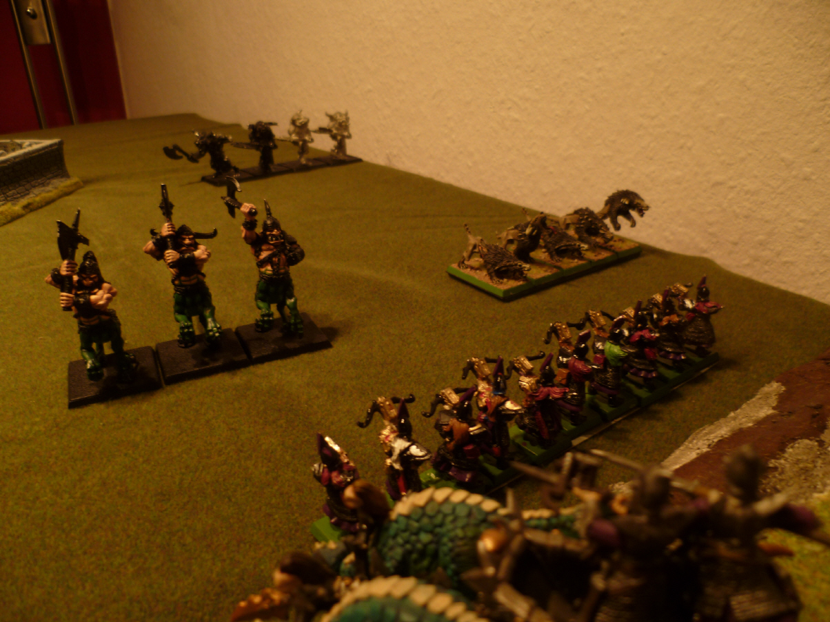 Letzte Runde. Drachenoger schnappen sich die Speerschleuder und Throgg verlässt seine Trolle in Richtung Chaosoger, um ihnen die Wiederholung eines möglichen Aufriebstests zu ermöglichen.