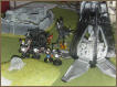 In Spielzug 5 entschied sich Axel seinen Cybot mit meinem 10er Trupp in den Nahkampf zu schicken. Dank Sprenggranaten konnte ich etwas gegen die 12er Panzerung ausrichten. Zwar erzielte ich nur Streifschüsse, aber diese raubten dem Cybot nach und nach die Hüllenpunkte. Dies verwandelte ihn in ein Wrack, obwohl ich nicht wirklich Schaden erwürfelt hatte. Feine Sache. So werden Panzer und Läufer nicht zum ewigen Frustverursacher, weil man zum x-ten Mal nur die Crew betäubte.