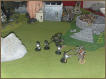 Im zweiten Zug erschienen beide Landungskapseln und nahmen die Raptoren in die Zange. Beschuss war einfach abzuhandeln. Da aber nun die Verluste von vorn weggenommen werden, verlor ich Flammenwerfer und Champion. Autsch! Ein normaler Raptor überstand den Beschuß und suchte in den nachfolgenden Zügen Deckung hinter dem Gelände.