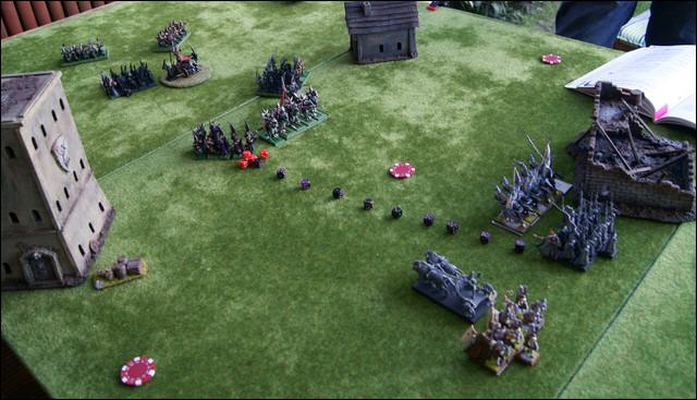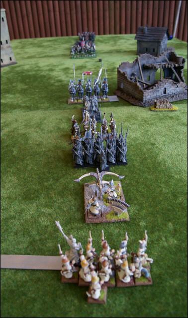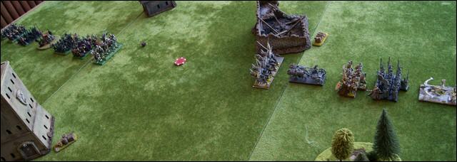 Sollte eine Einheit nicht mehr auf die Platte passen, wird sie 2" neben der ersten Einheit plaziert und alle weiteren Einhteiten werden wiederum dahinter plaziert. So haben Armeen mit sehr vielen Einheiten einen zwei- oder dreizügigen Heereswurm.